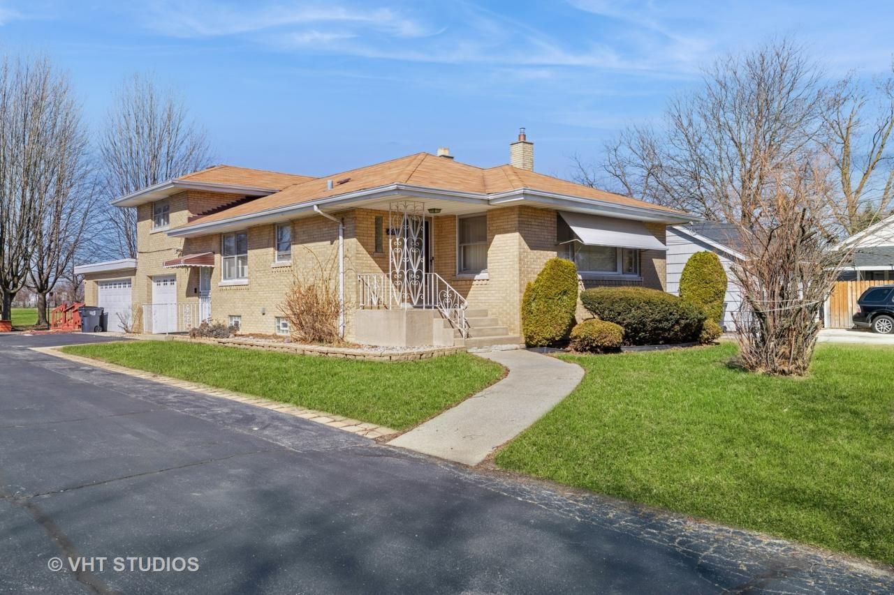 ESTATE SALE!! Unique all brick split-level with an attached 3 car garage on almost an acre lot with fruit trees! Main-level primary bedroom, hardwood floors in living room and bedrooms. Large eat-in kitchen with built-in oven, gas cook top, dishwasher, and trash compactor. The spacious lower lever offers not only a very large family room with a woodburning fireplace (as-is) but also a large bonus room which could be utilized as a 4th bedroom, library, den, media room, etc. plus the second 1/2 bath and lots of shelving and storage space. At the rear of the home is a good-sized deck, large patio and a huge back yard with fruit trees. Newer HVAC, and the roof is about 10 years old. Sold As-Is.