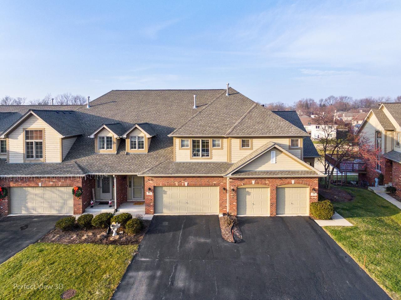 REMARKABLE townhome with AMAZING WATER and SUNSET VIEWS! THREE LEVELS of living space with a FINISHED WALKOUT BASEMENT overlooking a beautiful POND! Grand entryway with decorative columns welcomes you into the living room with window views overlooking water and a cozy gas log fireplace! Spacious kitchen has plenty of room for several chefs cooking simultaneously! SOLID SURFACE COUNTERS and ISLAND, large breakfast bar with stools, STAINLESS STEEL appliances, under cabinet lighting, and all that joins the ENORMOUS KITCHEN DINING AREA that OVERLOOKS the WATER VIEW! TWO OUTDOOR DECKS - one off kitchen and one off walkout basement - the sunset views are spectacular and visible from both levels! Upstairs you will find a very ROOMY LOFT and two bedrooms! Master bedroom/bath en suite with built-in closet, a separate walk-in closet, double vanities in master bath, jacuzzi tub, and separate shower! Head down into your FINISHED BASEMENT for TOTAL ENTERTAINING complete with WET BAR with STOOLS, refrigerator, and sink. Sliding glass doors leads you to the lower level concrete patio overlooking pond with fountain (turned off for the winter)! BATHROOMS all have CULTURED MARBLE COUNTERS! Entire home has solid 6-panel hardwood doors and ceiling fans in nearly every room! NEWER roof and skylights, SS kitchen appliances only 1.5 years old, hot water heater only 6 months old, ejector only 1 year old, Nest thermostat, and security system can stay! This townhome is so close to 80 and 355, convenient location for all that New Lenox has to offer, across the street from golf course, walking trails nearby, yet tucked away in a nice little cul-de-sac! SELL THE LAWN MOWER as you DO NOT HAVE TO CUT GRASS, RAKE LEAVES, or SHOVEL SNOW! Association takes METICULOUS CARE of the grounds in this great neighborhood!